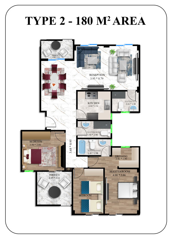 يقدم المشروع شققًا سكنية بمساحات متنوعة لتناسب جميع الاحتياجات